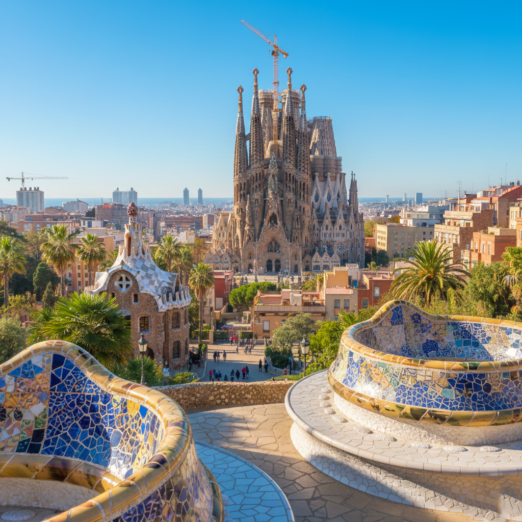 Sagrada Familia Park Güell La Rambla sangria. Barceloneta beach paella nights. Gothic quarter alleys hidden bars. Pickpocket watch art eat party cycle.