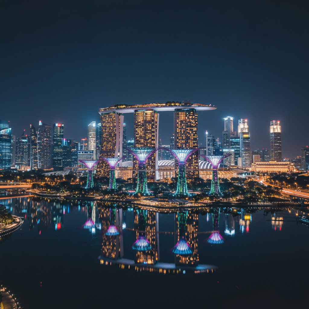 Garden city future vibes. Gardens by Bay Supertrees Marina Bay Sands infinity pool. Hawker centers chili crab heaven. MRT everywhere spotless. Weekend warrior dream spot.