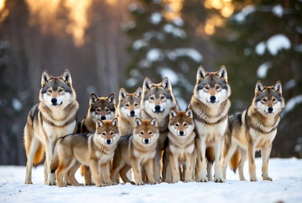 The wolves are social animals that exist in families. Parents observe their young and elderly siblings raise pups. Their communication is by use of sounds, facial expressions, and body language. These well-established social ties assist them in hunting effectively and defending the group.