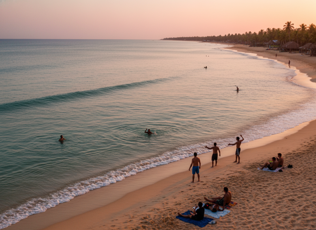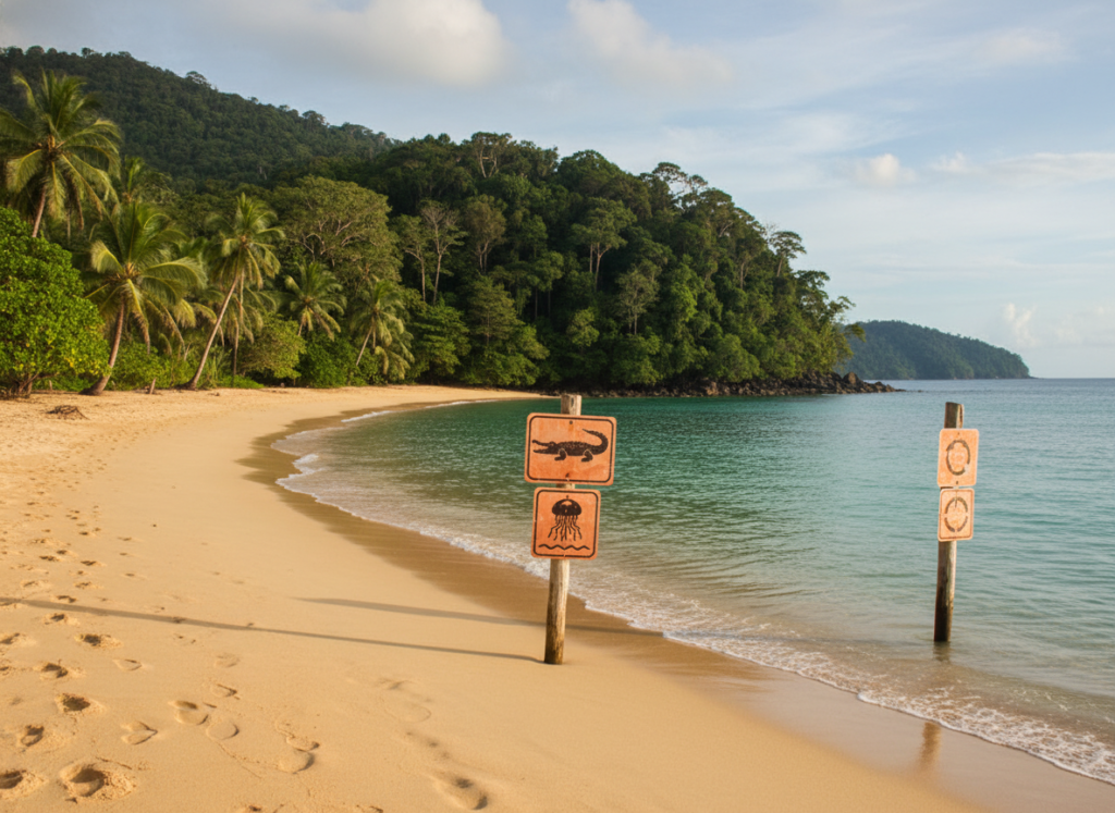 This beach feels almost playful at first. Then you notice the warnings. Crocodiles, jellyfish, strong currents. The risks shift with seasons. It looks gentle, but it does not forgive mistakes.