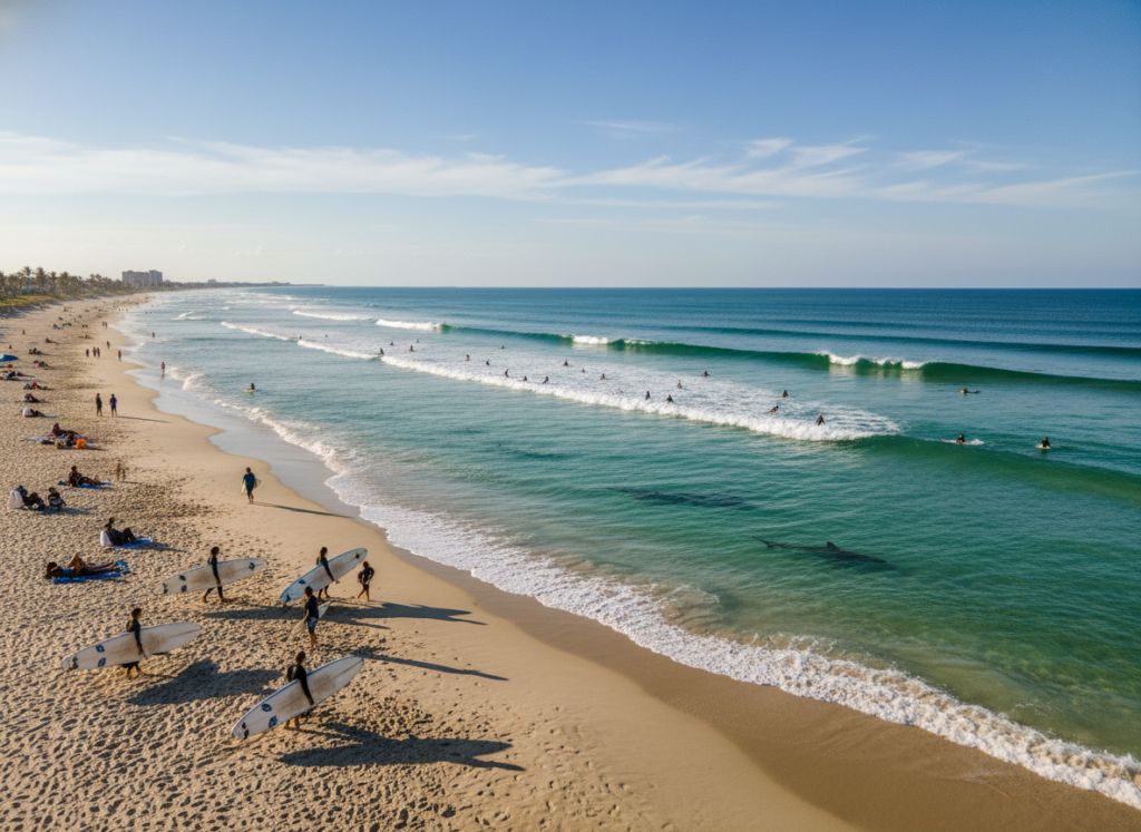 The waves here feel secretive. Murky water hides movement below. Shark attacks have changed how people swim. Even peaceful days carry a sense of waiting.