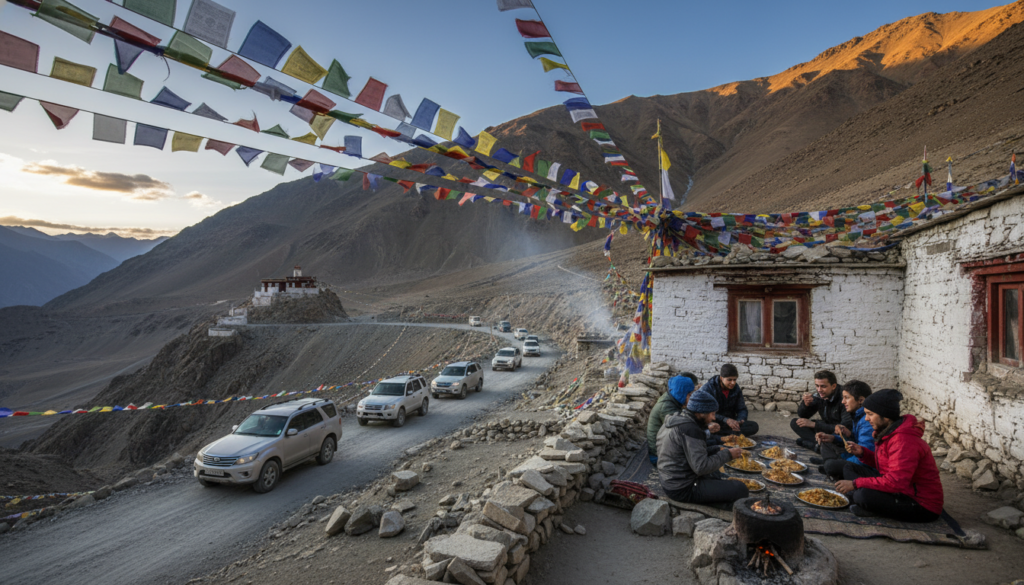 Self-drive SUVs from Manali, prayer flags snapping at 14k feet. Homestays serve thukpa by wood stoves. Stark beauty heals urban scars.