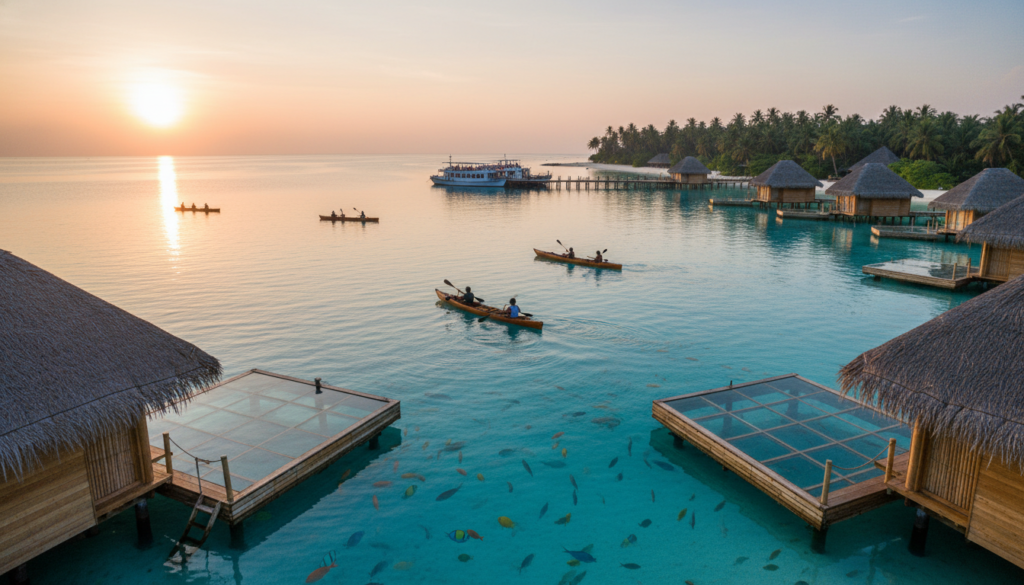 Government ferries drop at Bangaram atolls. Glass floors watch parrotfish. Kayaks glide dawn patrols. Island time slows pulse permanently.