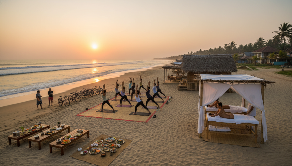 Arambol shacks host sunrise flows, ayurvedic massages follow. Seafood thalis nightly, no crowds post-monsoon. Rent cycles for village spins. Body mends, mind empties.