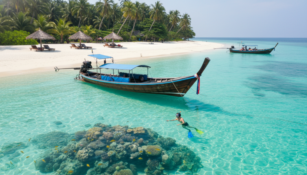 Havelock white sands, no high-rises. Snorkel reefs from beach chairs. Ferries pace perfect for siestas. Underwater world feels private.