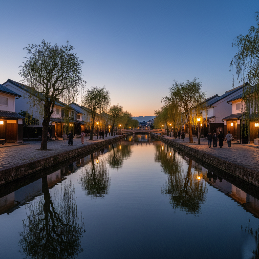 The Kurashiki Canal lined with white storehouses is a tranquil escape from the “hustle and bustle” of urban Japan. It offers a perfect opportunity for leisurely strolls between regional museums; it also has a very European feel in the pace of its nighttime strolling.