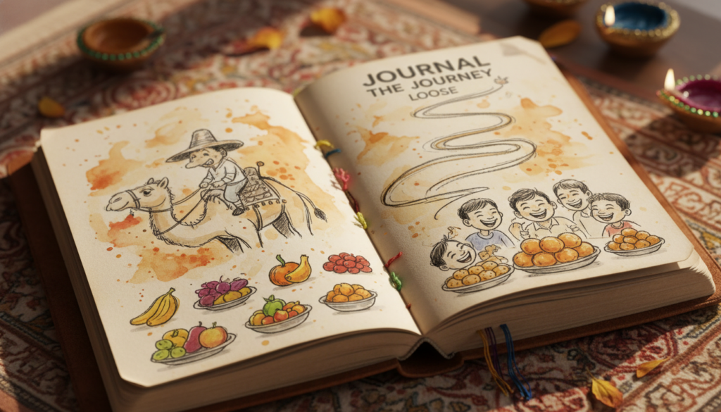Scribble snapshots daily—goofy camel rides, weird foods. Fades memory fog later. Grandkids devour those dog-eared pages over Diwali sweets.